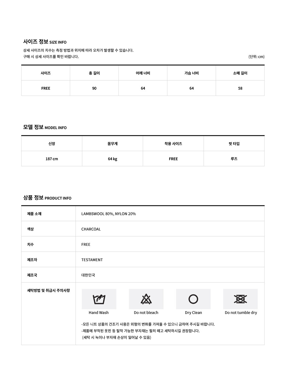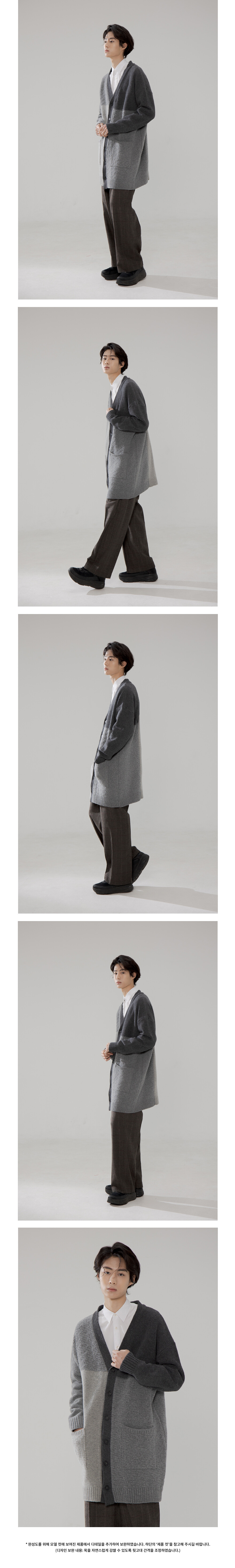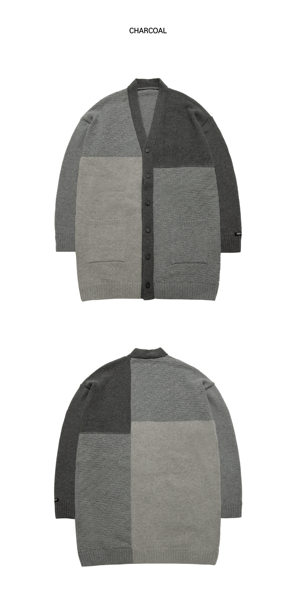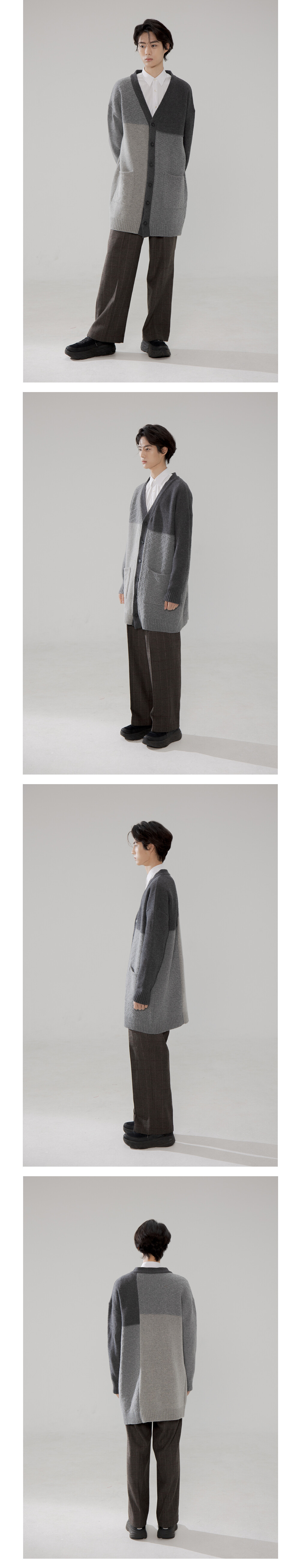 컬러블록 램스울 롱 가디건 (CHARCOAL)