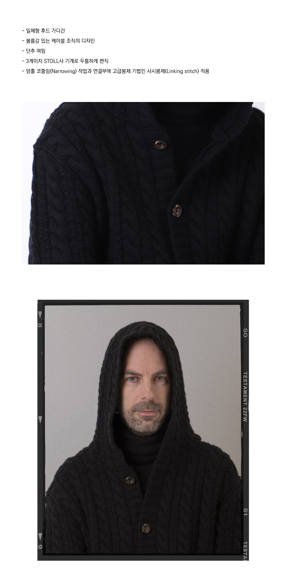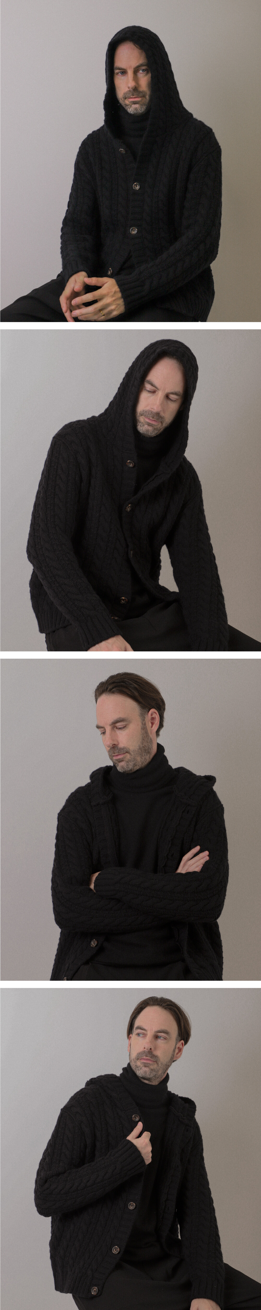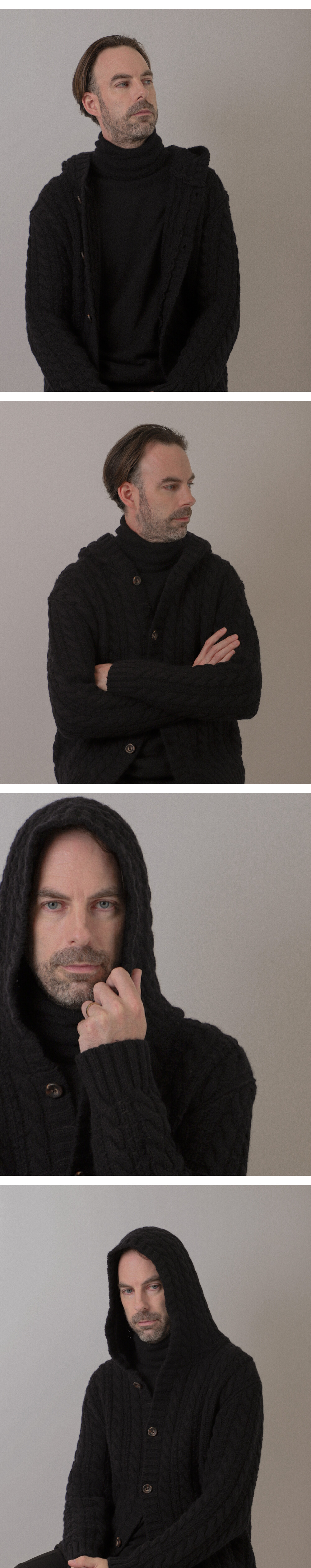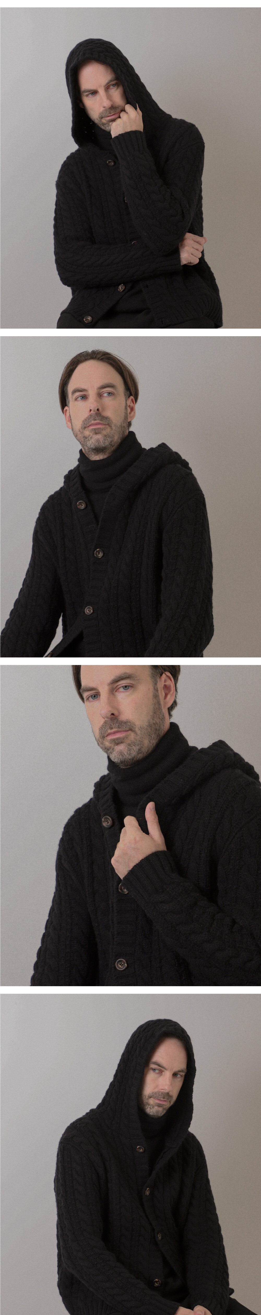 Cable hood cardigan_Black